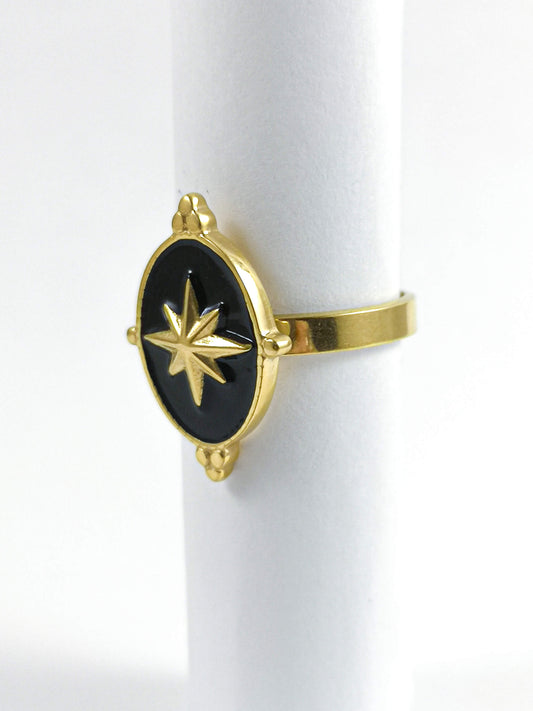 Anillo Solene Estrellado Cruzado en Acero Inoxidable Dorado