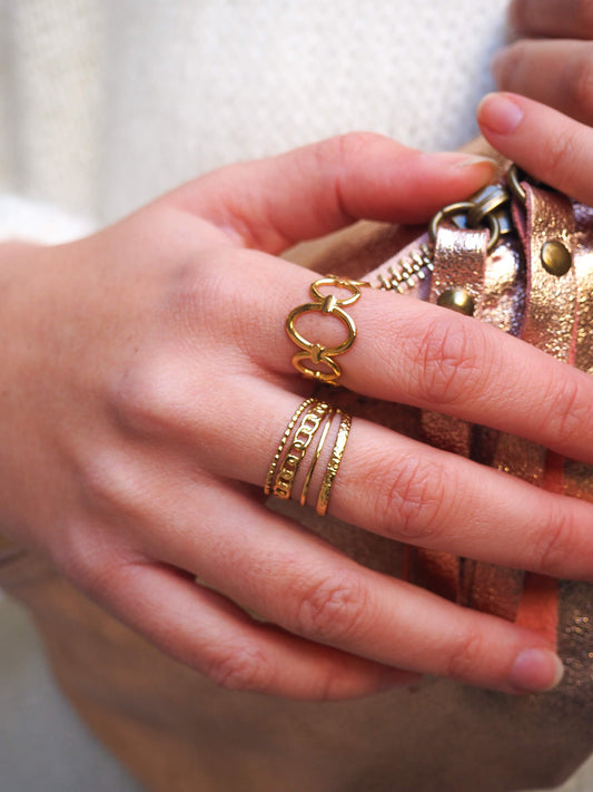 Anillo Lia con Cadena Calada en Acero Inoxidable Dorado